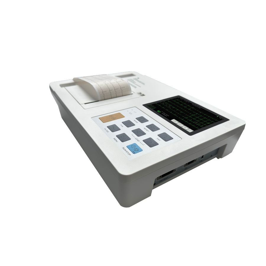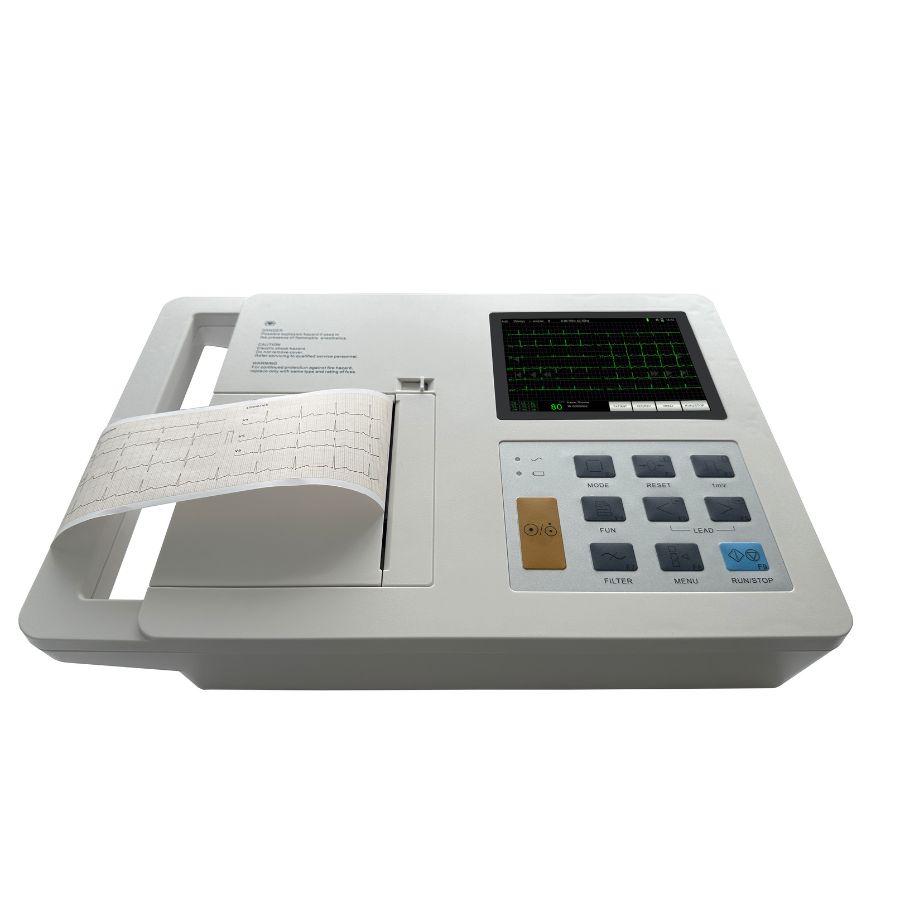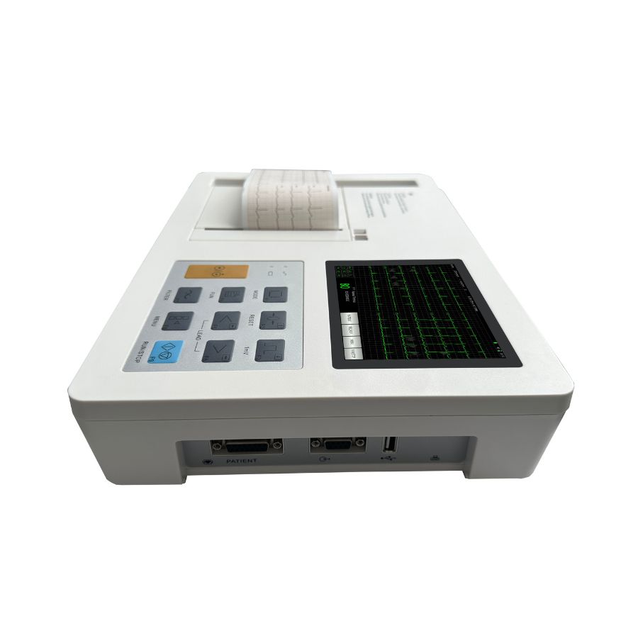 Цифровой 3-канальный электрокардиограф, модель HB1003 – это цифровой 3-канальный прибор для измерения физиологических функций с двенадцатью отводами, регистрирующий форму волны сердца во время электробиологического движения. Он предоставляет достаточную информацию для анализа аритмии и сердечно-сосудистых заболеваний, помогает выявить патологические нарушения, вызванные некоторыми лекарствами и электролитами или дисбаланс значения рН.