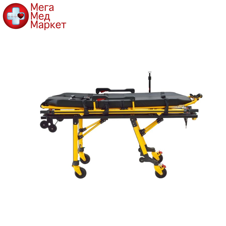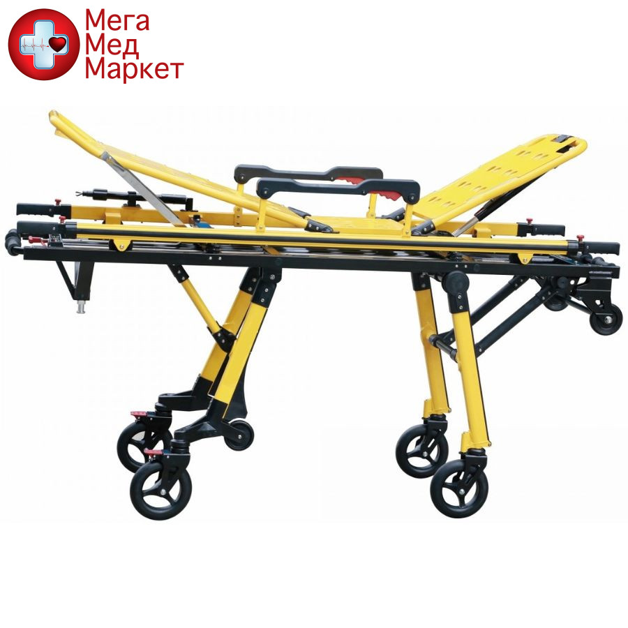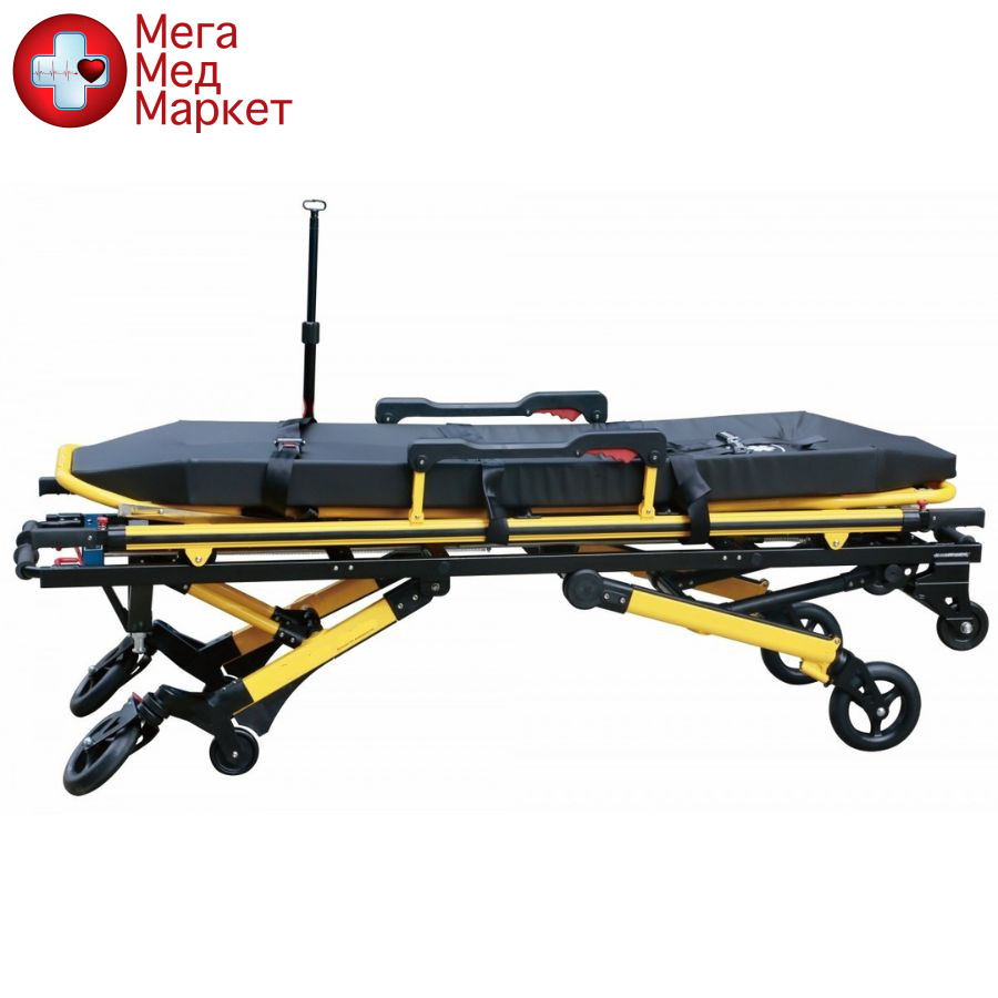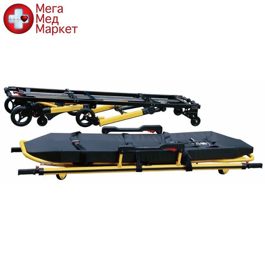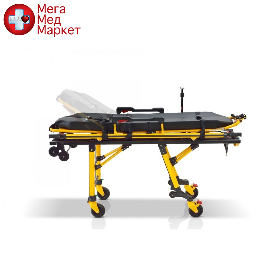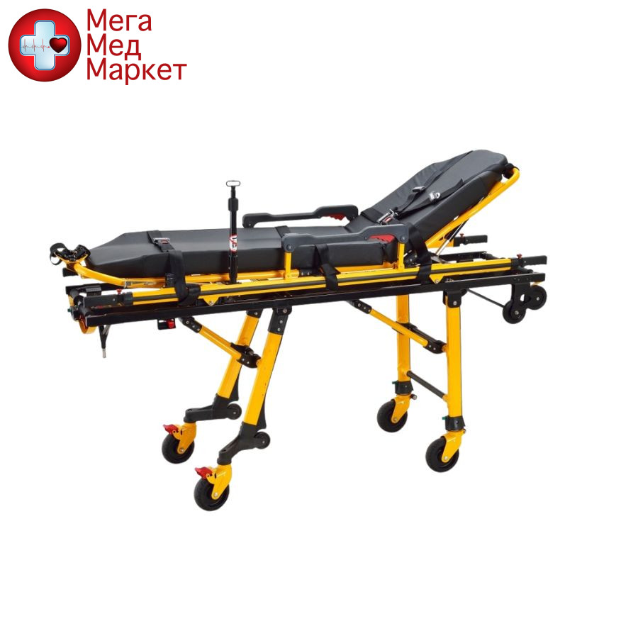 Носилки медицинские B08 (каталка автомобильная) предназначены для транспортировки пациентов в автомобилях медицинской скорой помощи и в больницах. Носилки оборудованы штативом для длительных вливаний. Верхняя часть носилок — снимается, имеет две пары колес и дополнительные ручки для переноски, секция для головы может изменять угол наклона. С помощью рычагов под секциями для головы и для ног можно регулировать высоту кровати (семь положений), что позволяет достичь необходимой для транспортировки высоты. Имеют возможность наклона по Тренделенбурга. Разложение ножек каталки происходит автоматически, при вытягивании ее из автомобиля скорой помощи. Колеса большого диаметра обеспечивают стабильность и маневренность. Носилки, с обеих сторон, оборудованы ограничительными скобками, которые опускаются. Каркас выполнен из сплава алюминия высокой прочности. Матрас изготовлен из водонепроницаемого, противобактериального поливинилхлоридного материала, который легко чистится и дезинфицируется. Могут поставляться с фиксатором устройства загрузочного ФПО — 03 и загрузочными устройствами ПО — 01 ПЗ- 02 ПЗ- 03.