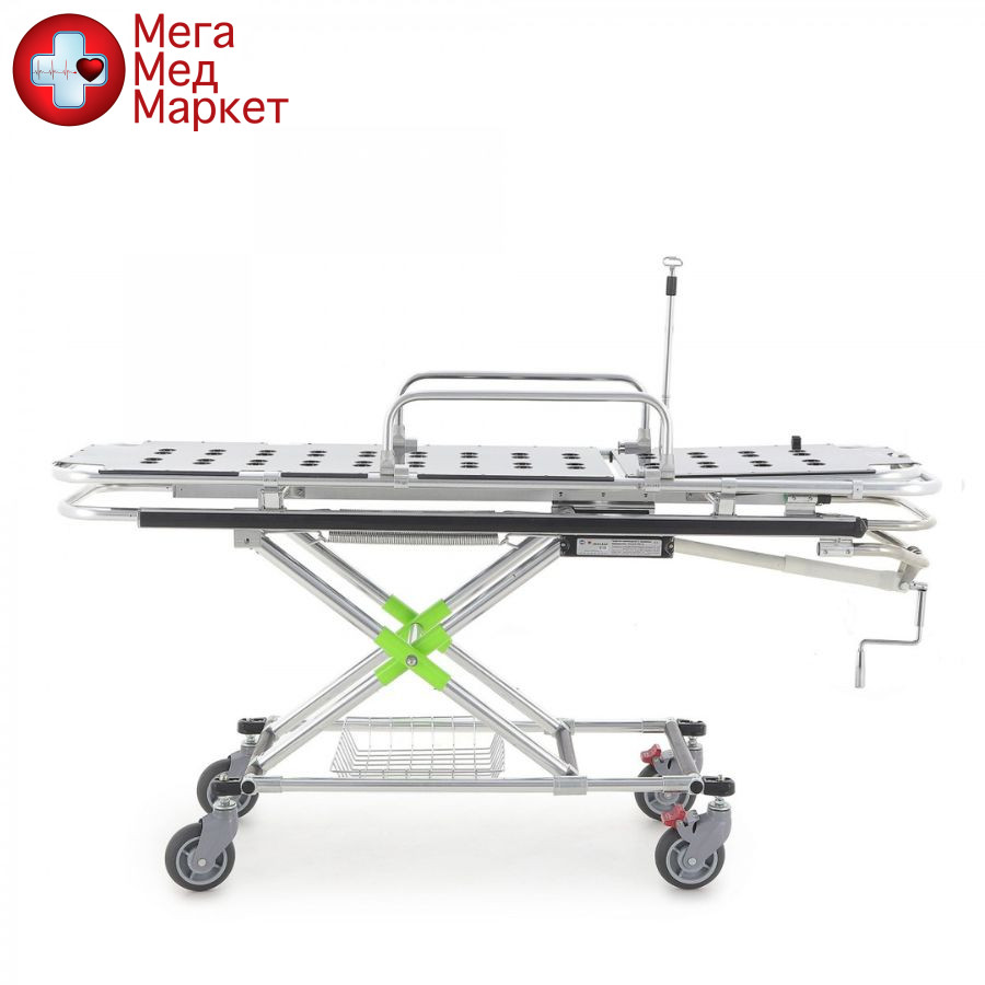 Медицинские носилки B13 ( каталка ) предназначены для транспортировки пациентов в больницах , заведениях здравоохранения и в межбольничных помещениях . Носилки оборудованы штативом для длительных вливаний. Верхняя часть каталка- ношив снимается , и предназначена для переноса пациентов. С помощью ручки можно регулировать высоту кровати , что позволяет достичь необходимой для транспортировки высоты. Колеса большого диаметра обеспечивают стабильность и маневренность. Носилки , с обеих сторон , оборудованы ограничительными скобками , которые опускаются. Нижняя часть носилок оснащена корзиной. Каркас выполнен из сплава алюминия высокой прочности.