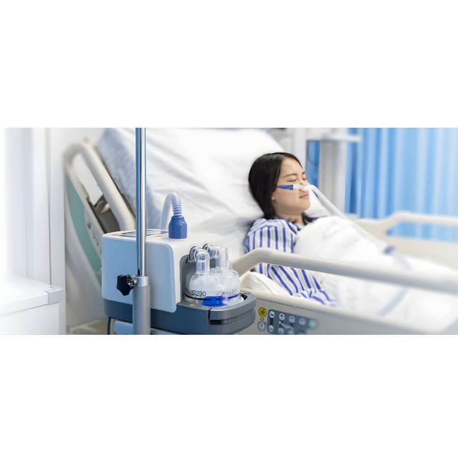 Функция мониторинга SpO2 в режиме реального времени облегчает оценку эффективности высокопоточной кислородной терапии.
