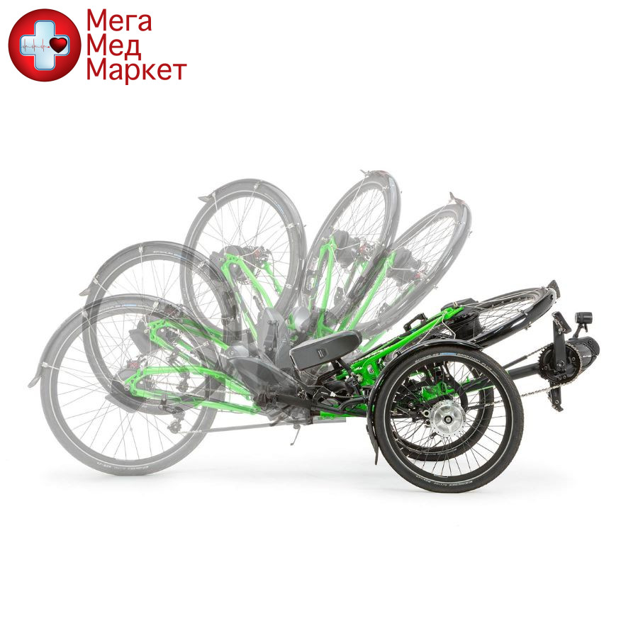 - Просто снимите сиденье, уложите руль и ослабьте рычаг быстрого соединения, чтобы сложить раму. Когда рама сложится, заднее колесо поворачивается, чтобы разместиться между передними колесами. Система сборки CFT позволяет сложить трехколесный велосипед менее чем за 30 секунд.