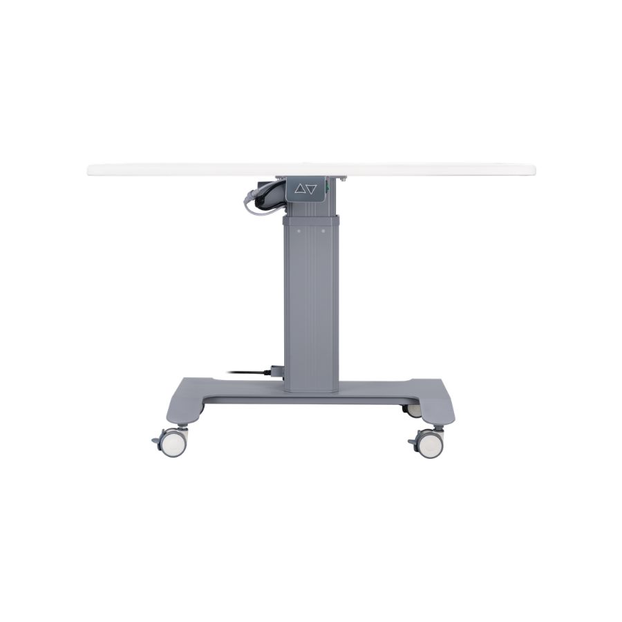 Прочная металлическая конструкция обеспечивает стабильность и надежность даже при ежедневном интенсивном использовании. Плавный и бесшумный подъем делает эксплуатацию комфортной и безопасной. Стол установлен на колеса с фиксаторами, что позволяет легко перемещать его в пределах кабинета и надежно фиксировать во время работы.