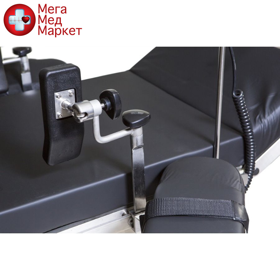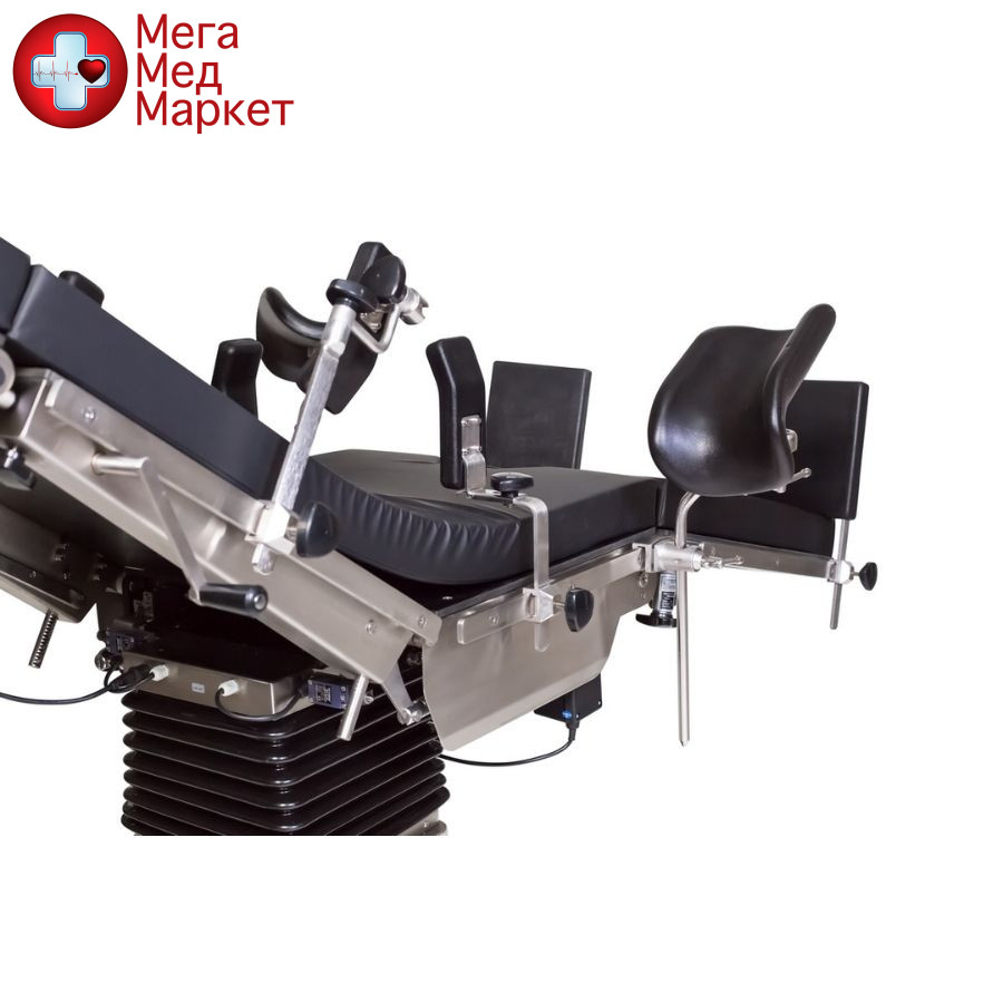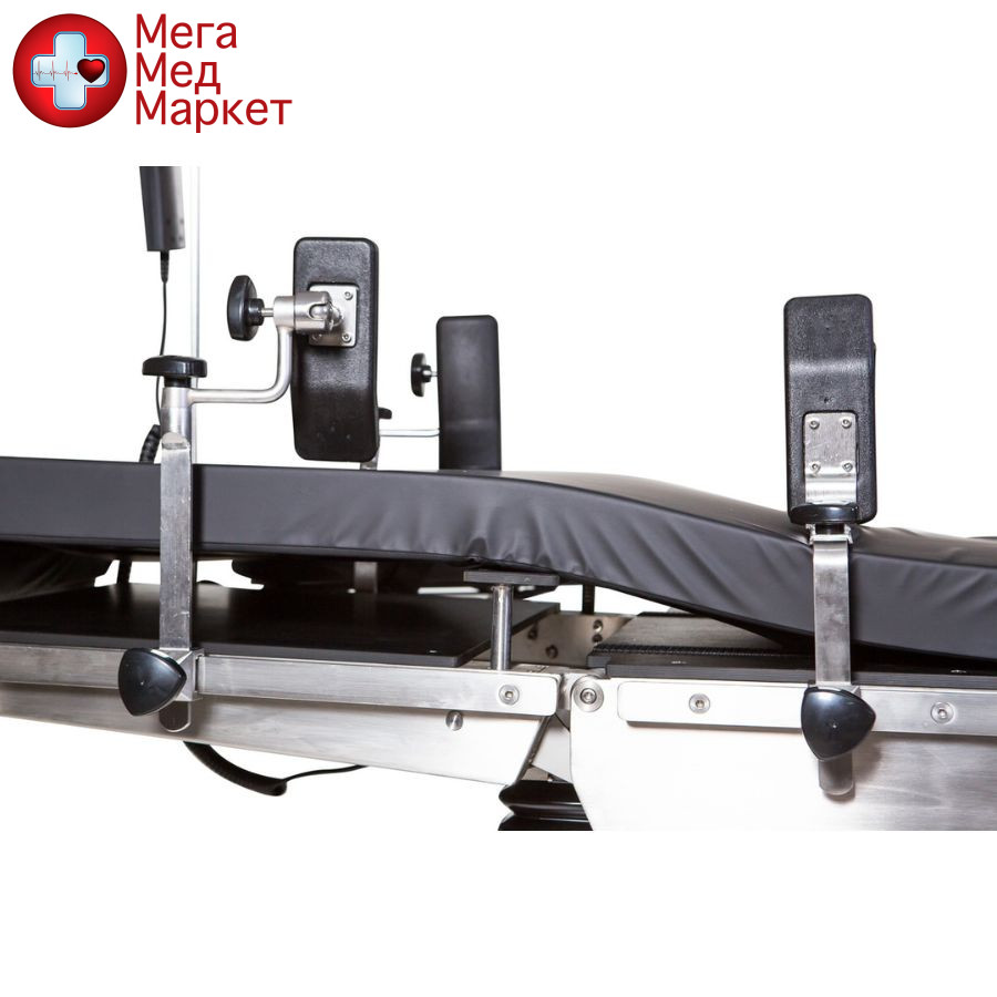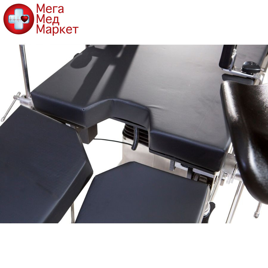 — Станина и телескопическая тумба стола выполнены из нержавеющей стали. Верхняя часть стола рентген-прозрачная: состоит из секции для головы, центральной секции (секции для сидения), спинной секции и двух секций для ног. Опоры для рук быстросъемные и рентген-прозрачные.