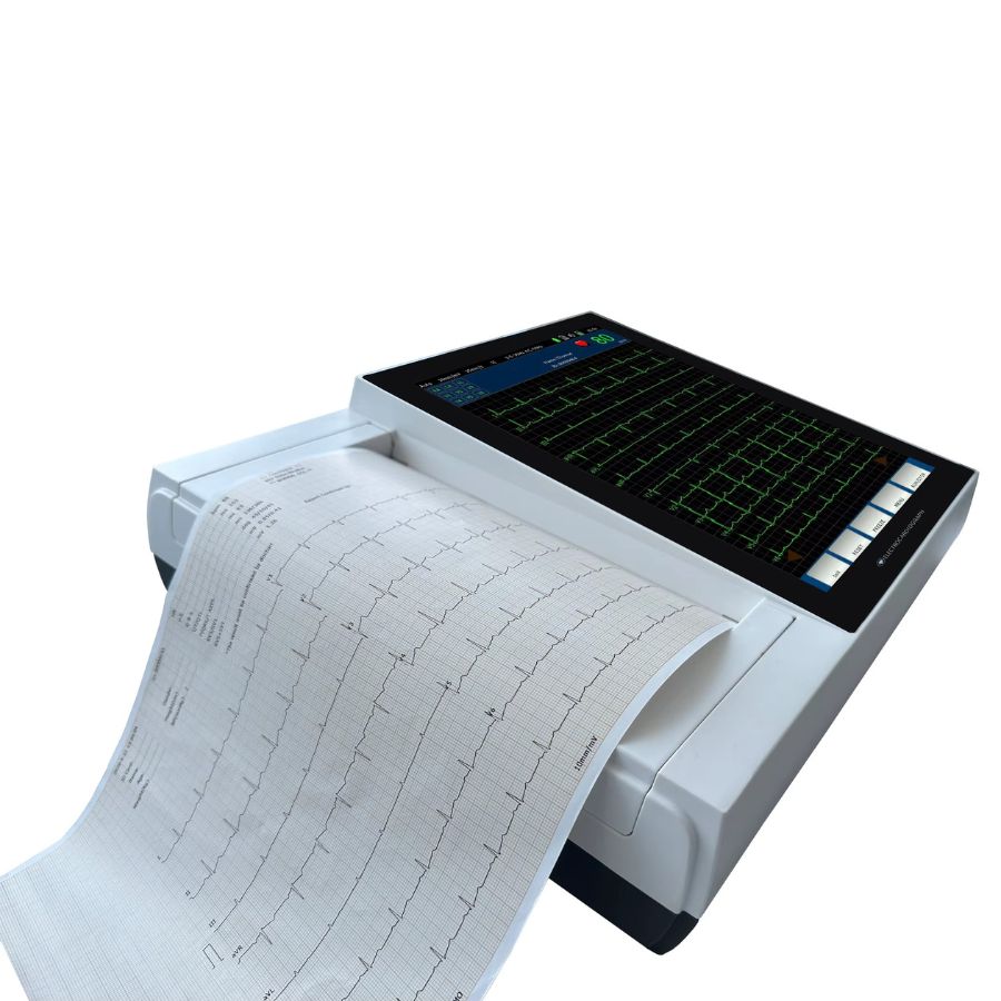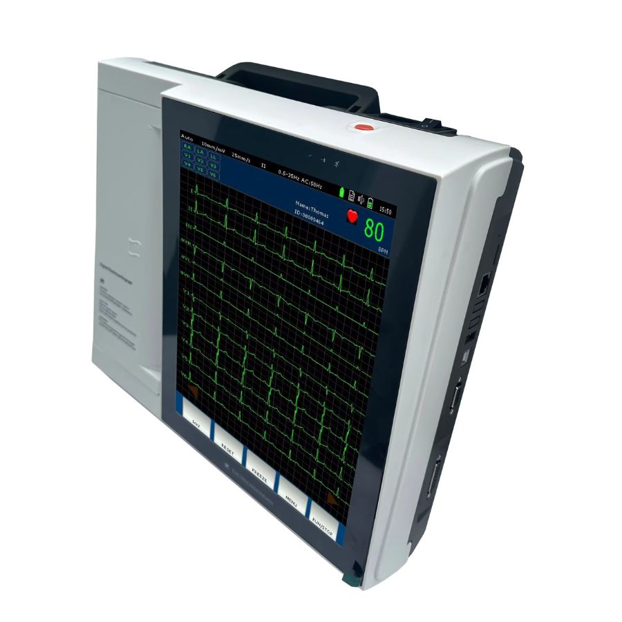 Цифровий 12-канальний електрокардіограф, модель HB1012P — це цифровий дванадцятиканальний прилад для вимірювання фізіологічних функцій з дванадцятьма відведеннями, який реєструє форму хвилі серця під час електробіологічного руху. Він надає достатню інформацію для аналізу аритмії та серцево-судинних захворювань, допомагає виявити патологічні порушення, спричинені деякими ліками та електролітами, або дисбаланс значення рН.