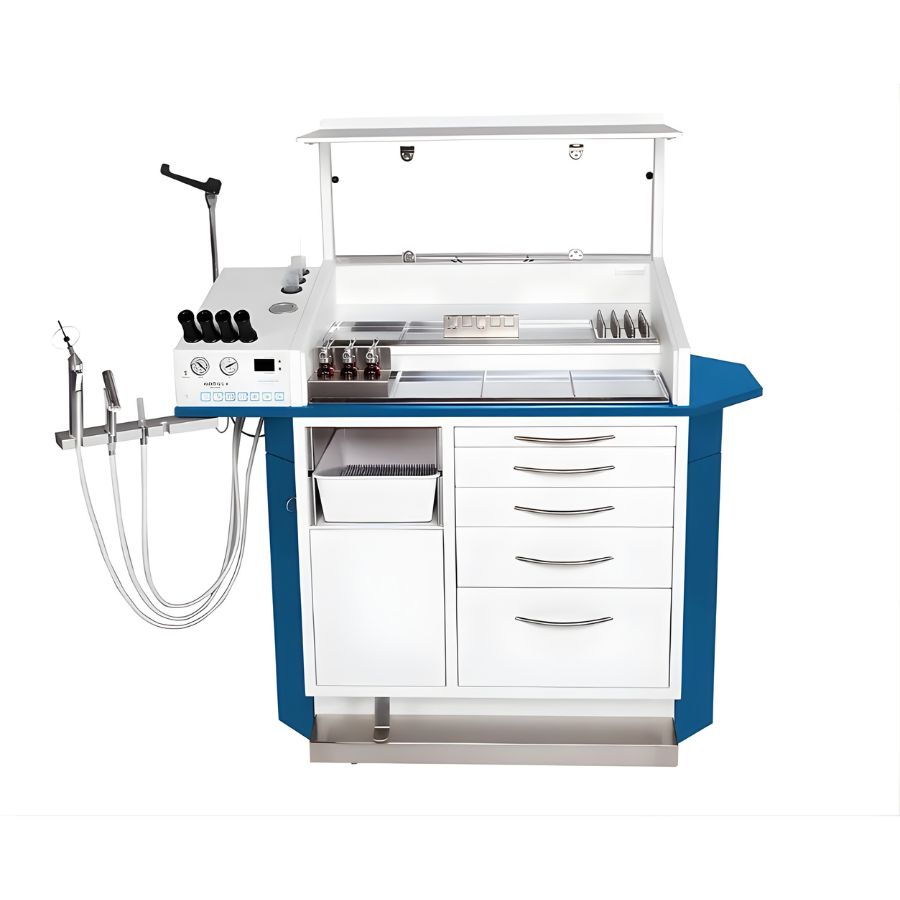 • Оптимізований робочий простір: Висувна стільниця та двоярусний відсік для інструментів із підсвічуванням забезпечують комфорт лікаря.