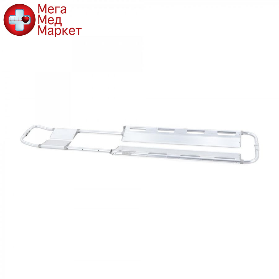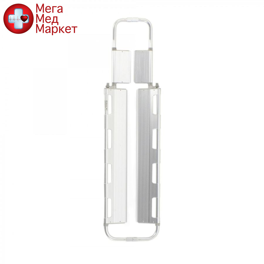 Ноші медичні A14 призначені для транспортування пацієнтів з важкими переломами і ушкодженнями хребта. Складаються з двох окремих частин, що робить їх зручними у використанні і дозволяє чітко зафіксувати пацієнта. Натиснувши на кнопки, ноші можна роз’єднати на ліву і праву частини, при цьому хворого не обов’язково переміщувати. Довжину ношів можна коригувати залежно від розмірів пацієнта. Складаються в поздовжньому напрямку. Каркас ношій виготовлений зі сплаву алюмінію високої міцності. До комплекту поставки входять два ремені безпеки. Ноші призначені для використання в екстреній медицині. Є можливість кріплення фіксатора для голови. За необхідності транспортування пацієнта на автомобілі швидкої допомоги ноші закріплюються на автомобільну каталку.